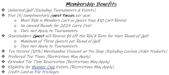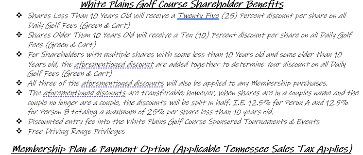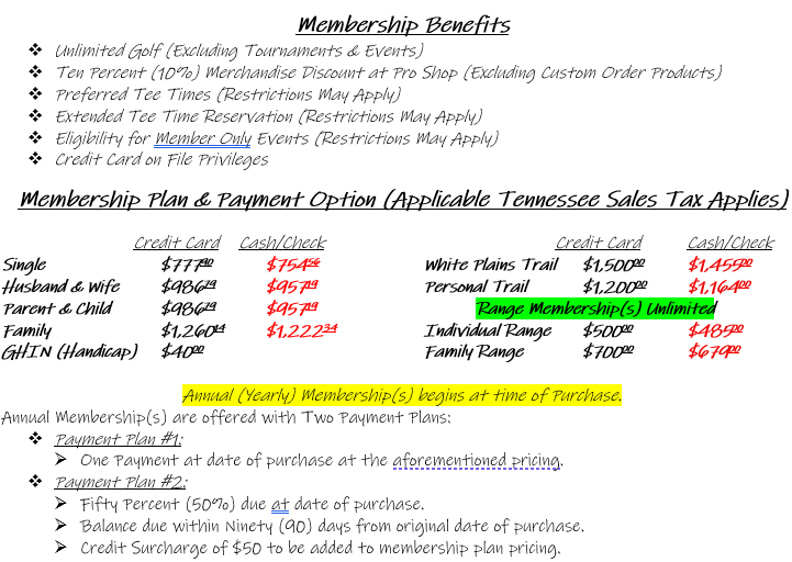 Call the Pro Shop for more details 931.537.6397